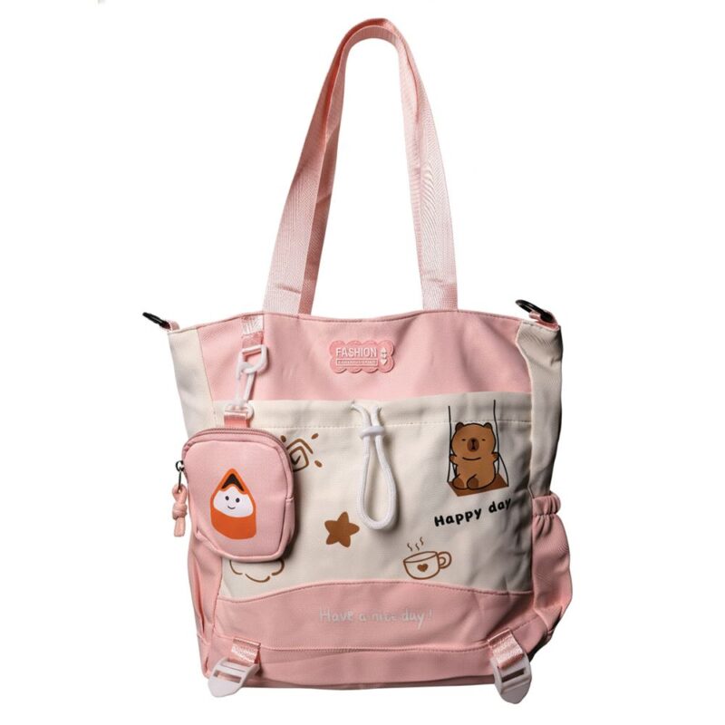 Kawaii Canvas Tote Bag for Girls – Multi-Functional School & Travel Shoulder Bag with Matching Coin Purse